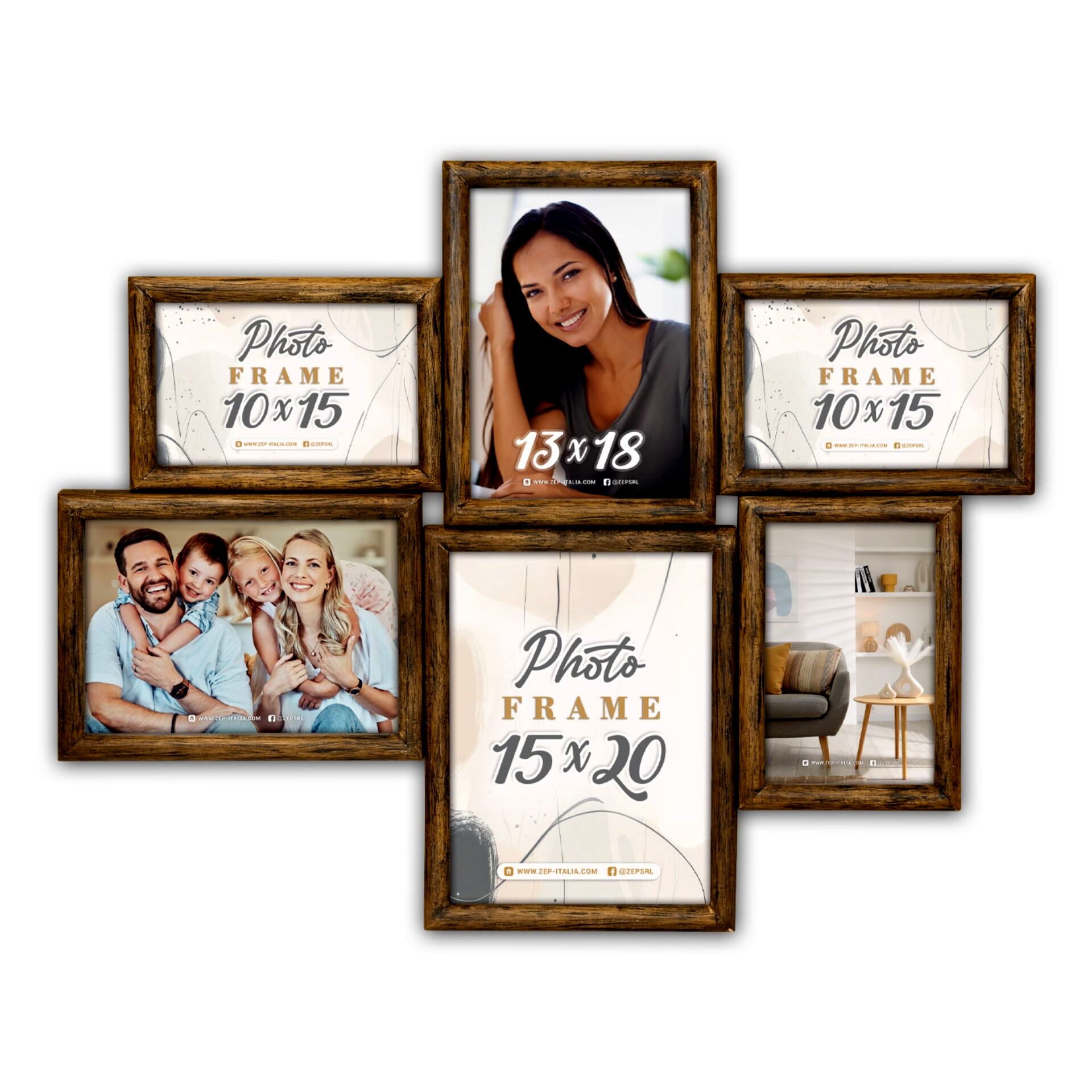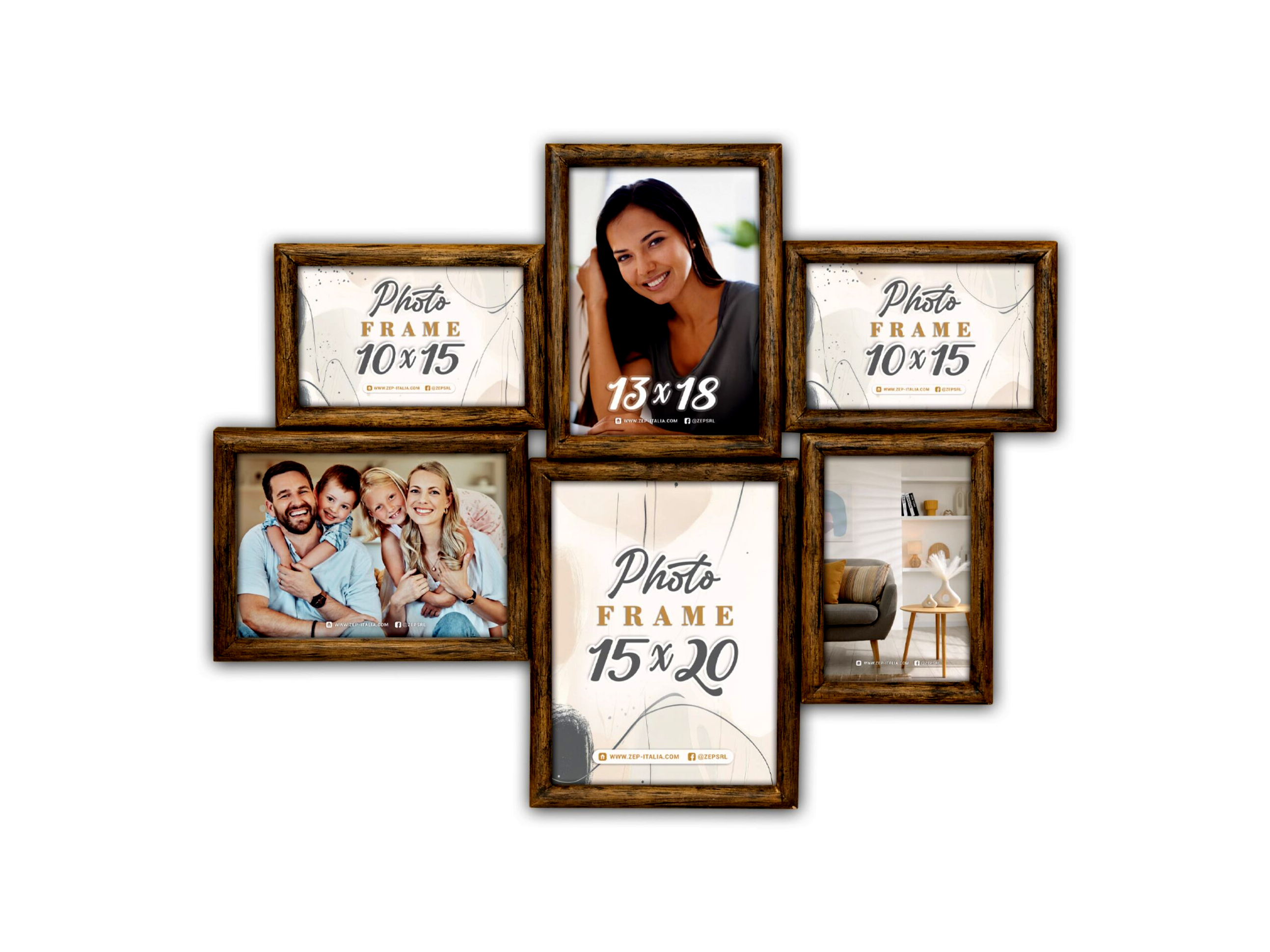 Ez a keret hat különböző formátumú fotó befogadására alkalmas: három 10x15 cm-es, két 13x18 cm-es és egy 15x20 cm-es fotó. Így kedvenc képeid változatos válogatását mutathatod be, mindig új hangulatot teremtve otthonodban.
