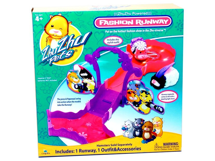 Itt az ideje a Zhu Zhu Pets divatbemutatónak! A kifutón a hörcsögök díszes ruhákban pompáznak, és a zsűri értékeli a ruhakölteményeket! A készlet működés közben fényeket ad a kifutónak, így még csillogóbb lehet a műsor! A készlet csatlakoztatható bármely Zhu Zhu Pets pályával. A játék 3 db AAA vékony ceruzaelemmel működik, a csomagolás az elemeket nem tartalmazza. A csomag hörcsögruhát is tartalmaz.
