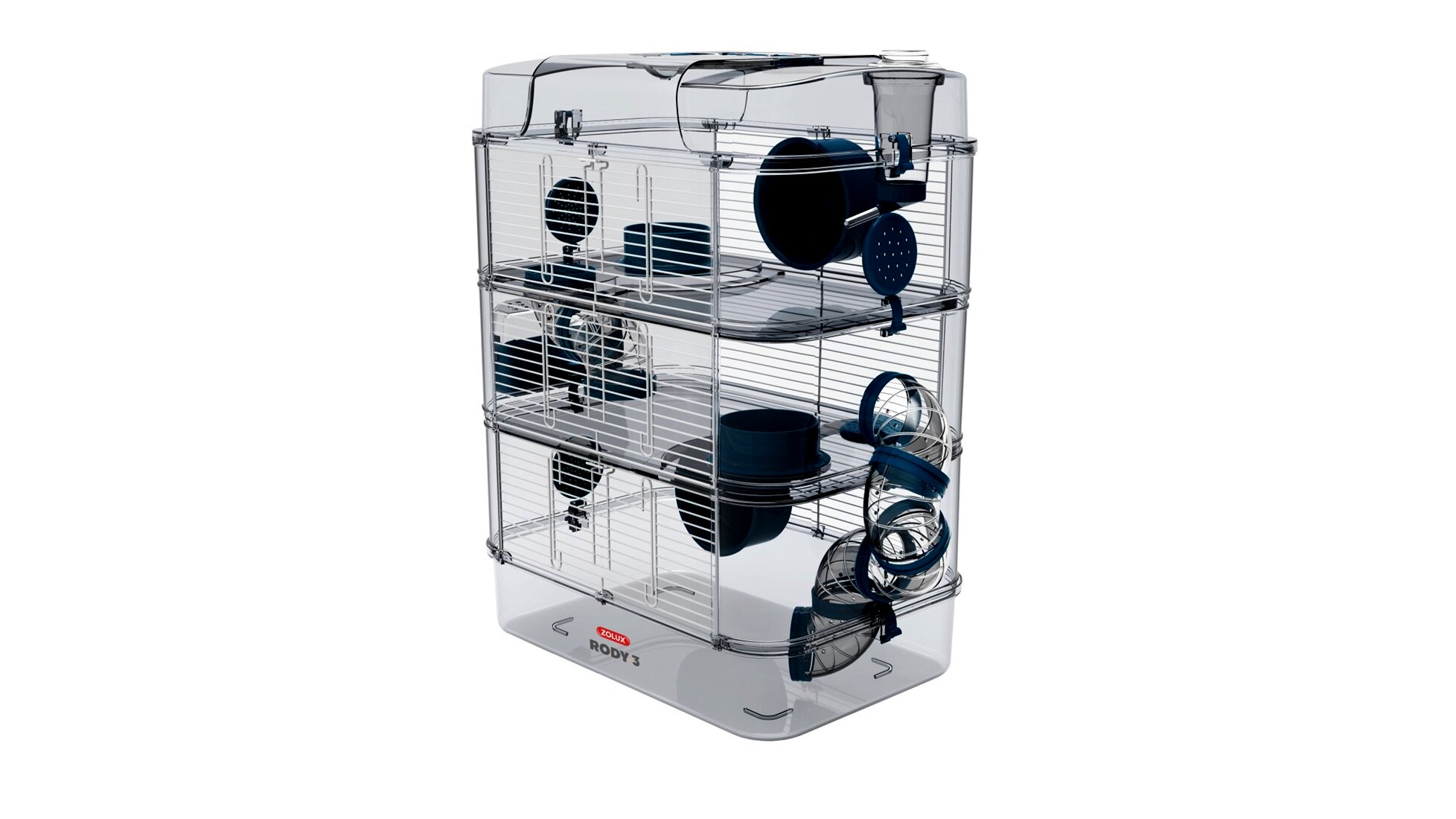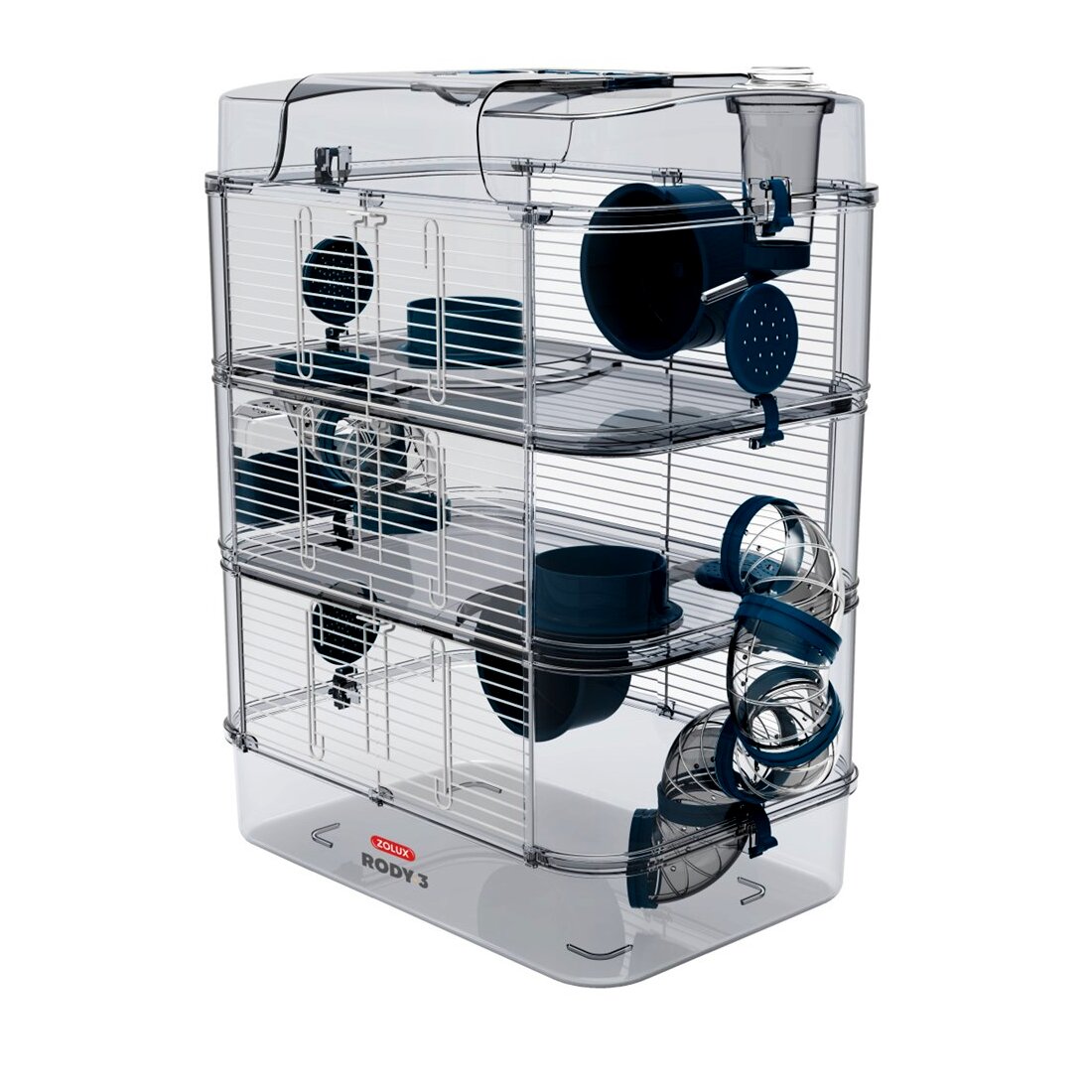 3 szintes élőhely kis hörcsögök, egerek és futóegerek számára. Alkalmas mindenféle törpe, orosz, arany, szíriai, Bobrovsky, egér és futóegér számára. Elegendő hely akár 3 vagy 4 állat számára is