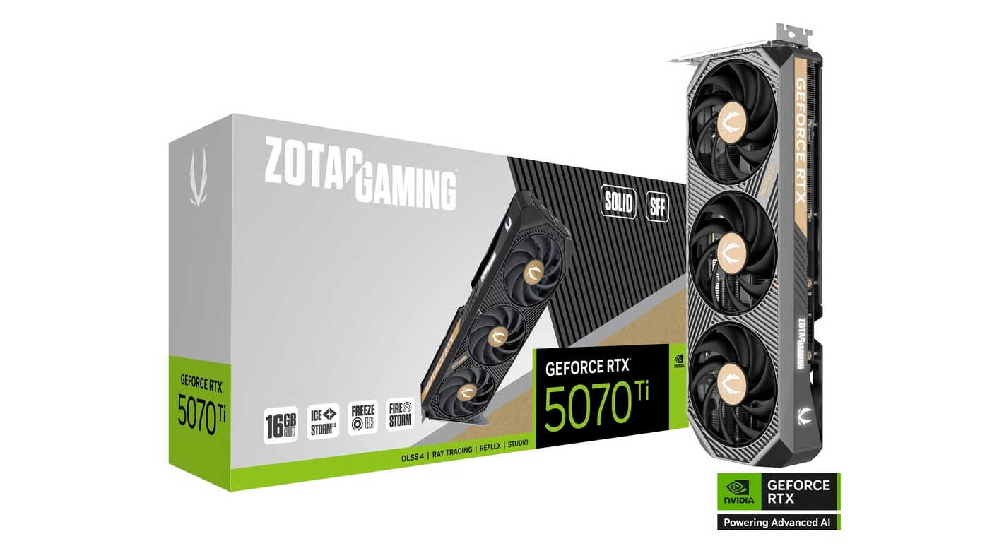 A ZOTAC GAMING GeForce RTX™ 5070 Ti SOLID SFF videókártya kimagasló teljesítményt nyújt mind játékok, mind tartalomkészítés terén, mindezt egy kompakt, 2 slotos kivitelben. Az NVIDIA legmodernebb Blackwell architektúrája és a DLSS4 technológia teszi a kis formátumú kártyát (SFF) a nagy teljesítmény és a sokoldalúság tökéletes kombinációjává.