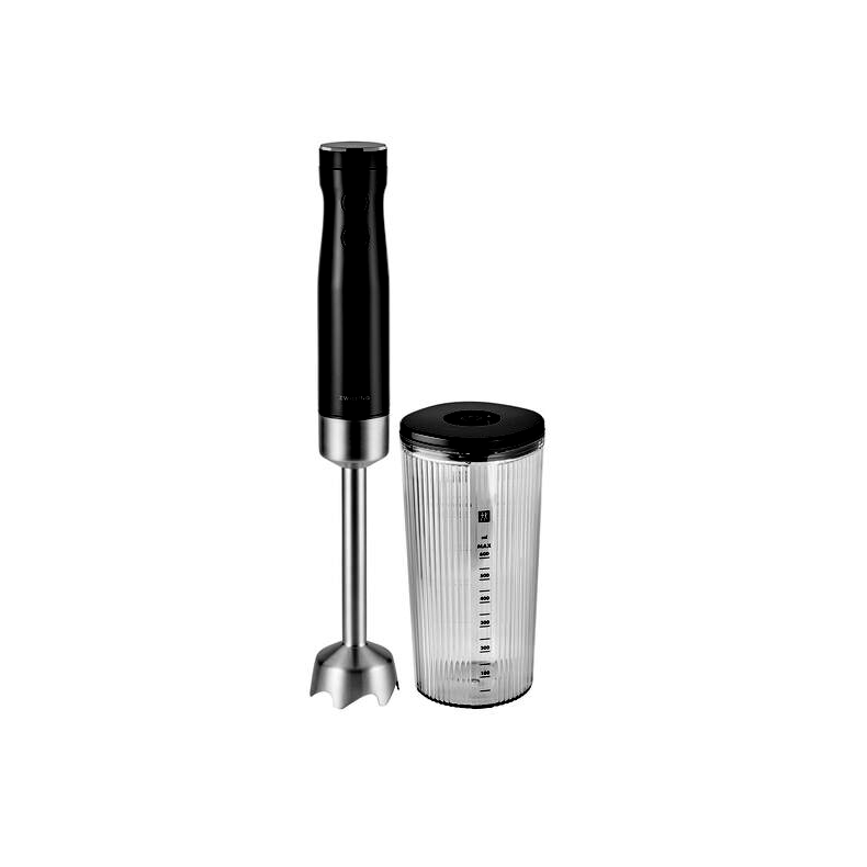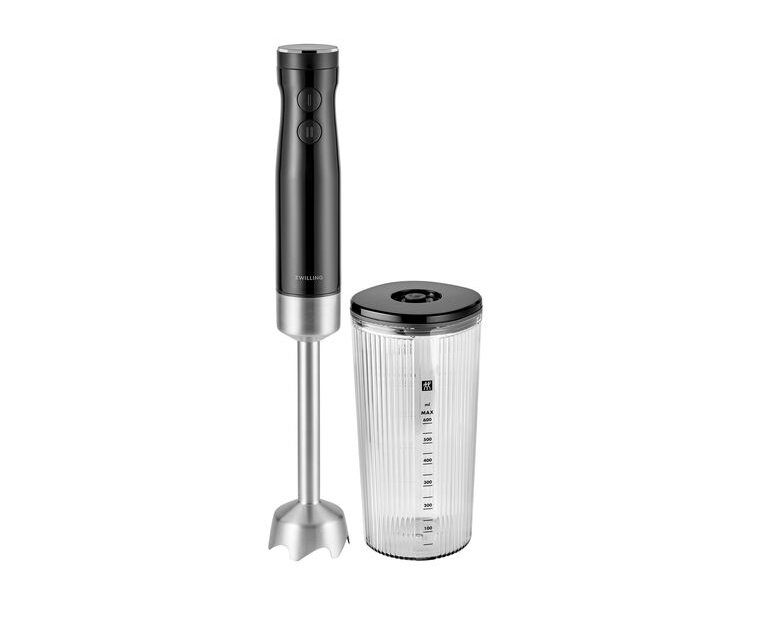 Egy turmixgép, egy keverőedény, végtelen lehetőségek: A Zwilling Enfinigy botmixer mérőpohárral praktikus, praktikus és hihetetlenül sokoldalú. Legyen szó turmixról, szószról vagy bébiételről: A rozsdamentes acélból készült, erőteljes, 800 wattos motorral működő botmixer kilenc sebességfokozatával, köztük a Pulse funkcióval minden keveréshez az ideális beállítást kínálja. Az éles Zwilling winglet penge piranha fogakkal biztosítja a legfinomabb turmixolási eredményeket. A turmixgép harangja ugyanilyen innovatív: különleges formája javítja a kezelhetőséget, és még jobb aprítást biztosít az ételeknek. Ideálisan működik a mellékelt turmixkannában - de a hosszú botmixer minden edényben is kiváló eredményt biztosít. A BPA-mentes műanyagból készült mérőkancsó 600 ml-t tartalmaz, és a Zwilling Fresh & Safe készülékkel kompatibilis fedéllel rendelkezik. Így például reggel elkészítheti a szószokat, vákuumozhatja őket, és este frissen fogyaszthatja. A botmixer további előnyei: a lágy indítás funkció, amely csökkenti a fröccsenést, az intuitív, 2 gombos vezérlés és az 1,2 méteres kábel, amely új szabadságot biztosít a konyhában a botmixer használata során.