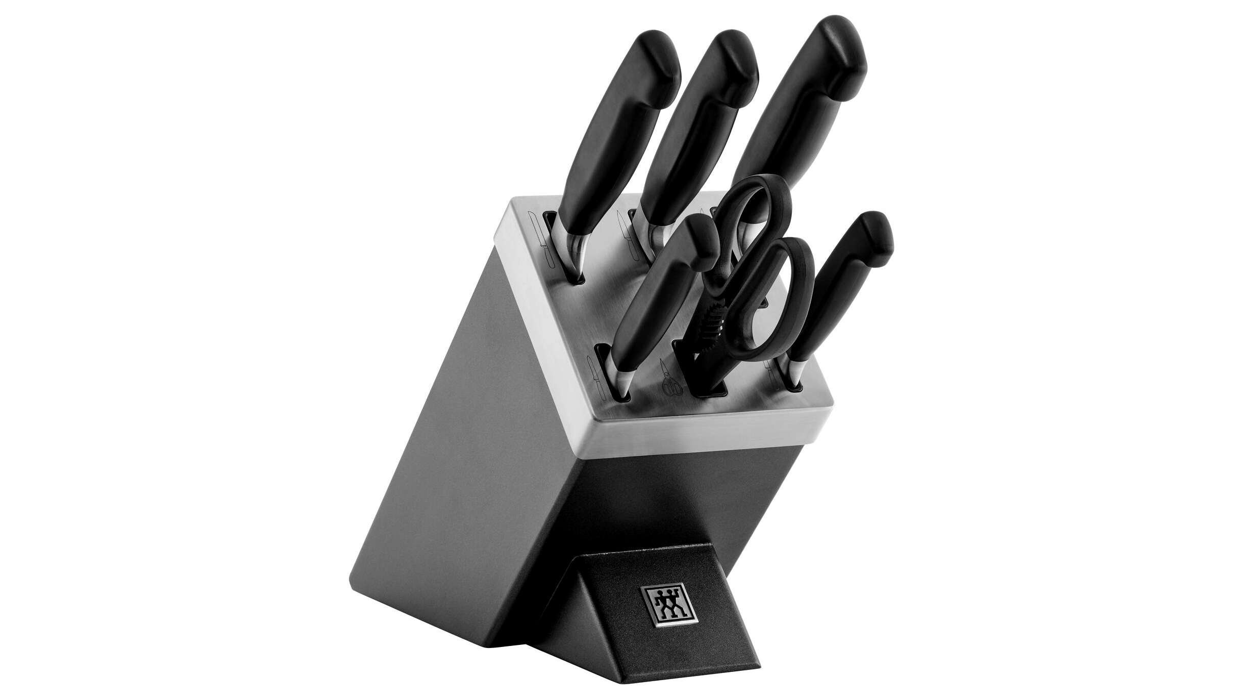 A FOUR STARS sorozatból a KIS technológiás ZWILLING SharpBlock biztosítja a kések optimális élességét. Az önélező késblokk készlet megvédi késeit a sérülésektől, és teljesen feleslegessé teszi az élezést.