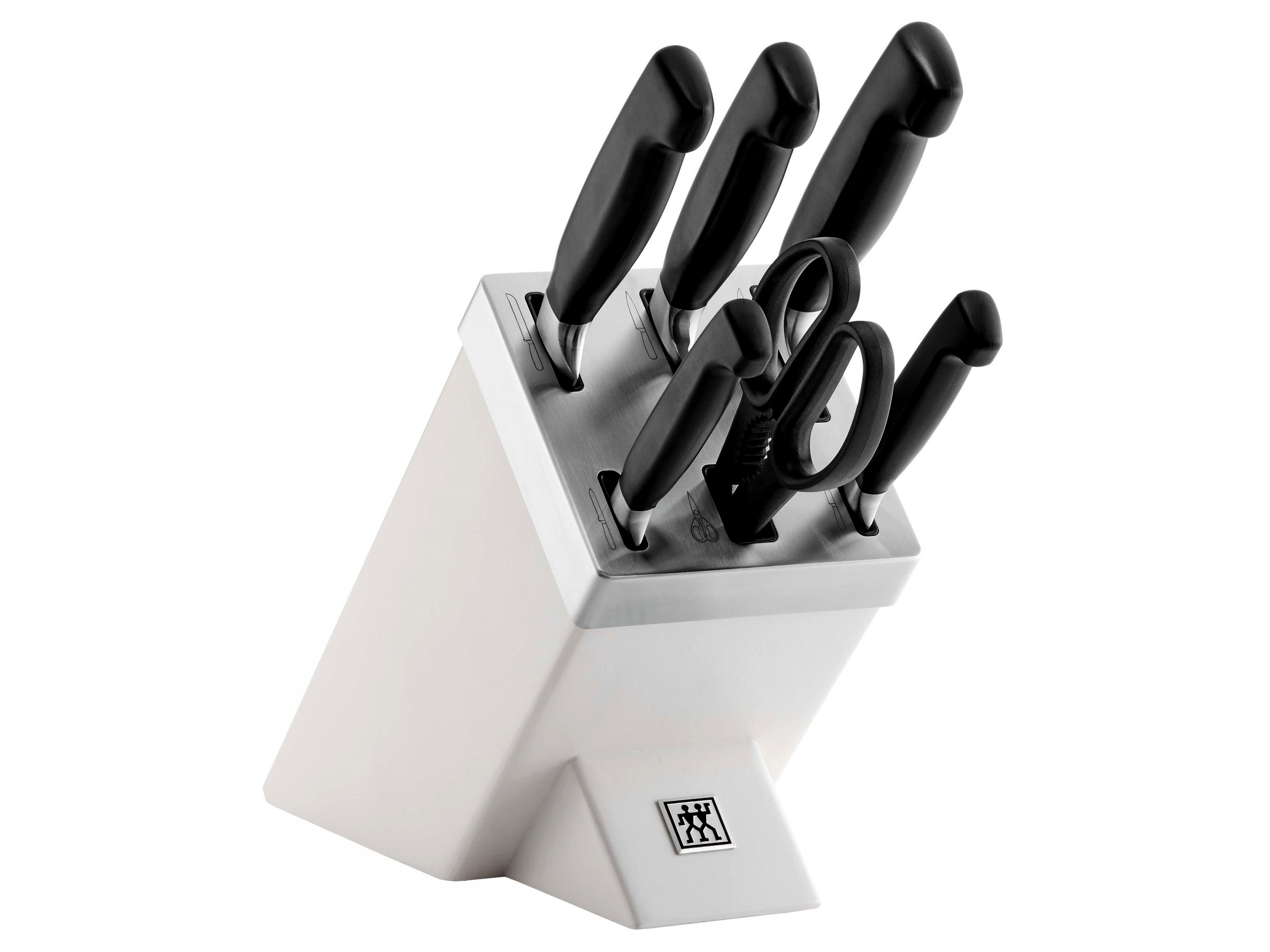 Az éles kések a jó konyha elengedhetetlen tartozékai. Mesterszakácsok és hobbi szakácsok számára is ajánljuk. Ez a praktikus szett a főzés során hasnzált kések összes típusát, valamint multifunkciós konyhai ollót is tartalmaz. Stílusos robusztus blokkban tárolhatja őket, amely kőris fából készült. Minden egyes résben élező mechanizmus található, amelynek köszönhetően a kések élesek maradnak.