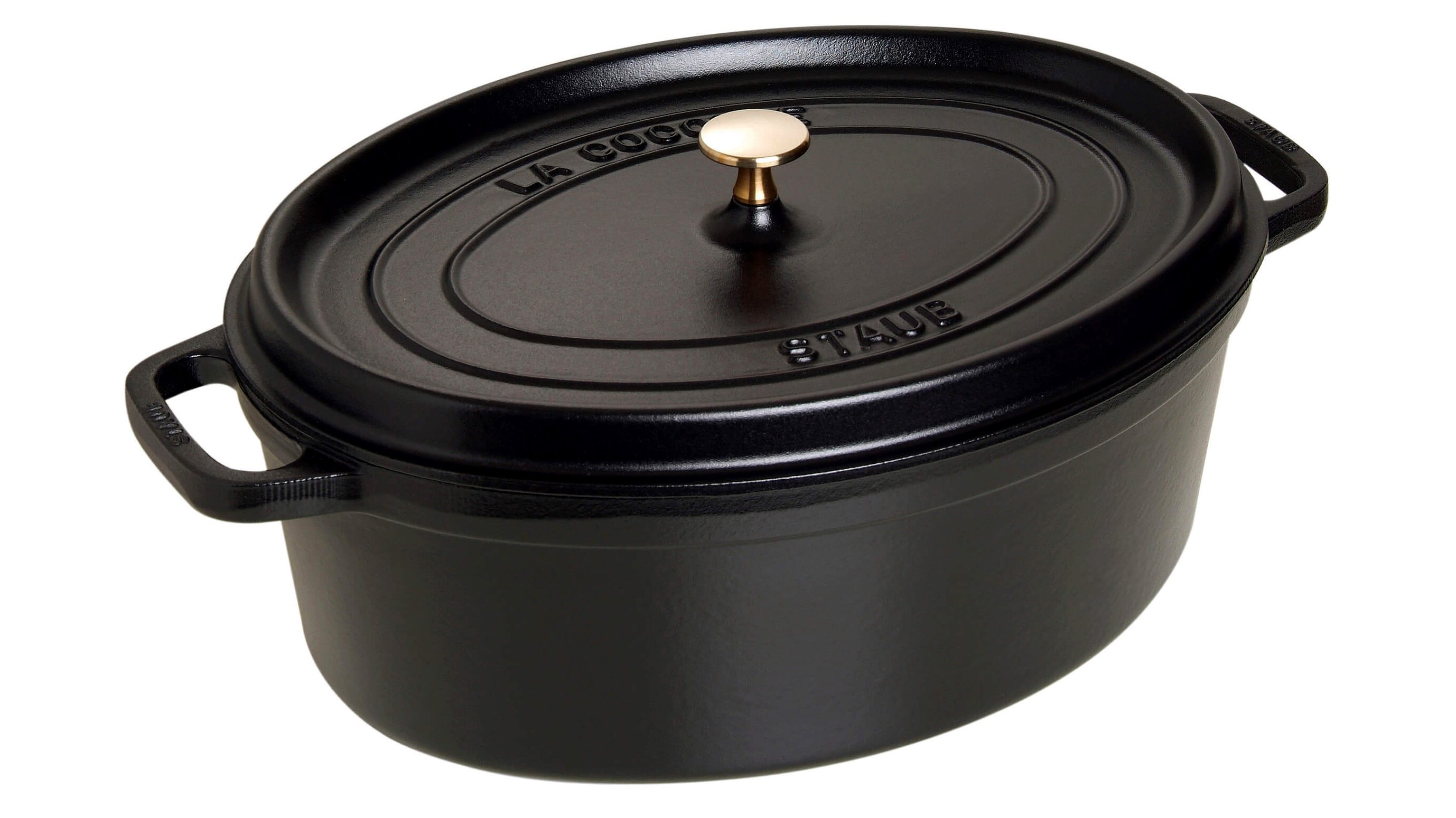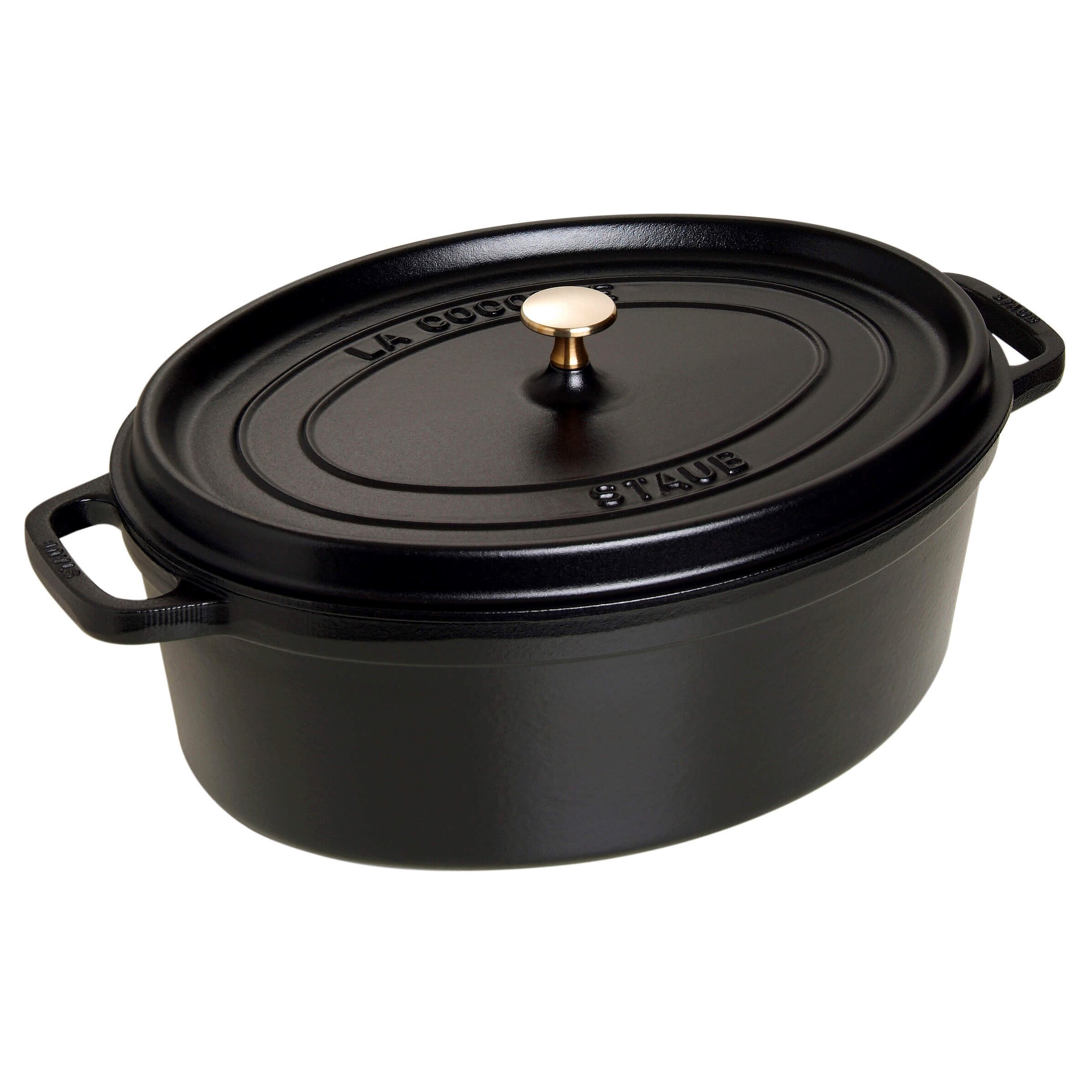 A népszerű La Cocotte termékcsalád STAUB rakott edénye klasszikus fekete színben kapható. A középpontban az ovális cocotte funkcionalitása áll, amely egy kis kifinomult kialakítással párosul. Bőséges űrtartalom áll rendelkezésre az ételek, például sültek, zöldségek vagy halak számára, mivel a cocotte akár 4,2 literes is lehet. Az edény számos különféle előnnyel jár, mint például a könnyű használat és tisztítás, a kiváló tartósság és a csodálatos párolási hatás. A cocotte öntöttvasból készült, belül matt fekete zománcozással, amely gyorsan elosztja a hőt. Hosszabb ideig tárolja a hőt, hogy egyenletesen tudjon bejutni az ételbe, így kíméletes és egészséges főzéshez is alkalmas. A cocotte igény szerint minden típusú hőforráson használható, legyen az gáz, villany vagy indukció. Ez a STAUB cocotte a tökéletes választás, pörkölteket vagy rakott ételeket készítésére.